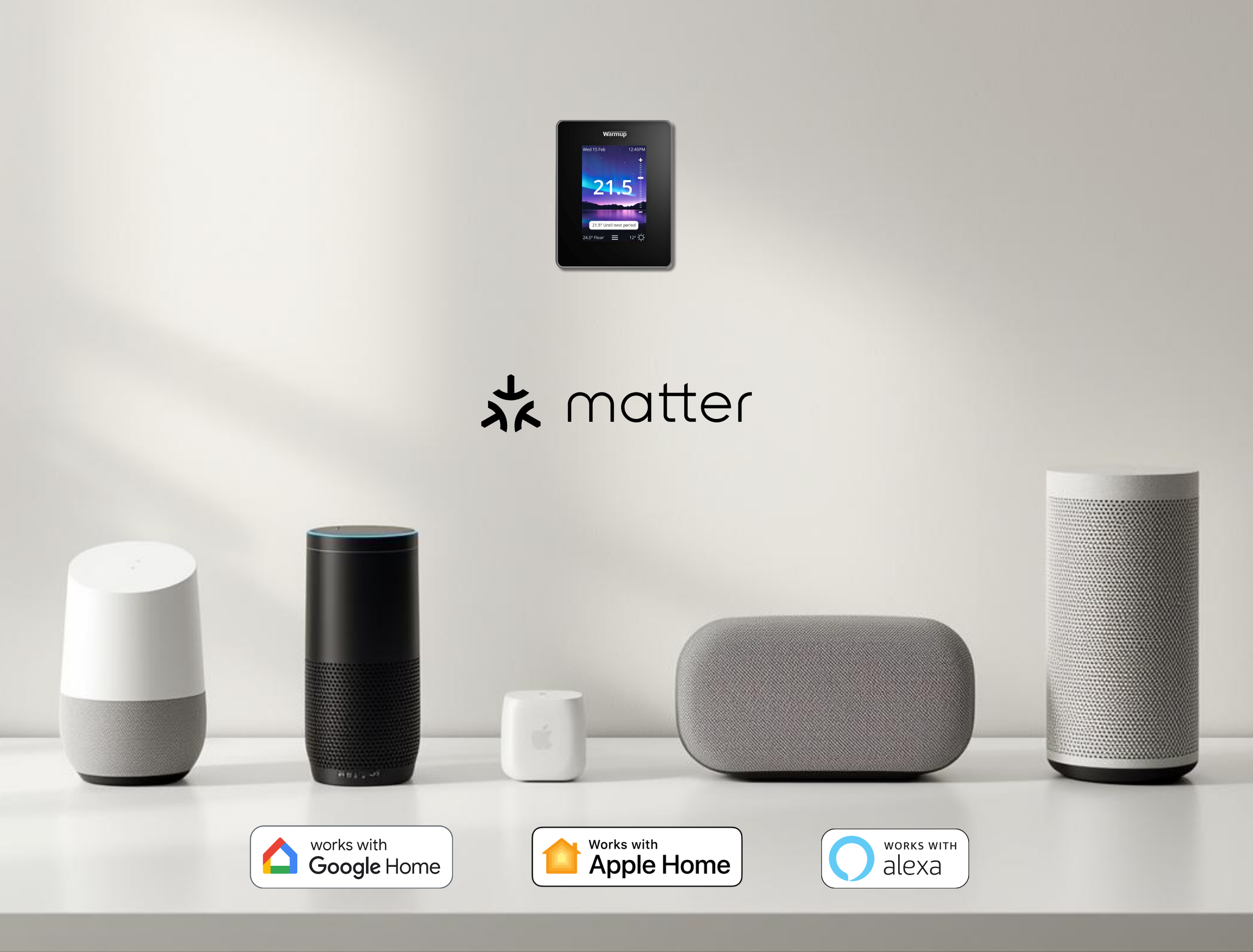 Napredna Matter tehnologija omogućuje integraciju sustava grijanja u pametni dom. Upravljanje je moguće putem bilo kojeg uređaja povezanog s Matterom, uključujući Apple Home, Google Home i Amazon Alexa. Grijanje se može kontrolirati glasovnim naredbama ili automatiziranim rutinama s jedne platforme, pružajući jednostavno korisničko iskustvo.